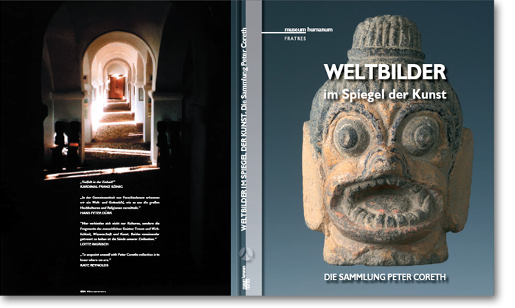 Das Buch Weltbilder im Spiegel der Kunst entschlüsselt die Botschaften dieser „Bedeutungsträger“. Es steuert den Leser sicher durch den wildwüchsigen Garten menschlicher Imagination. Hunderte Beispiele aus der anthropologischen Sammlung Peter Coreth lassen wichtige Entwicklungslinien hervortreten und inspirieren neue Sichtweisen. Die Kunstwerke werden nicht nach den gängigen Einteilungen, sondern nach kulturübergreifenden Gemeinsamkeiten aufgerufen. Alle Objekte treten themenbezogen ins Blickfeld und ermöglichen dadurch eine vergleichende Betrachtung. So kann der Leser faszinierende, oftmals rätselhafte Zusammenhänge entdecken und dem „Geheimnis Kunst“ einen guten Schritt näher treten.